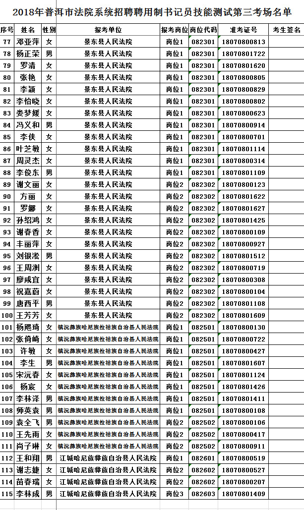 2018年普洱市法院系統(tǒng)招聘聘用制書(shū)記員技能測(cè)試考場(chǎng)名單