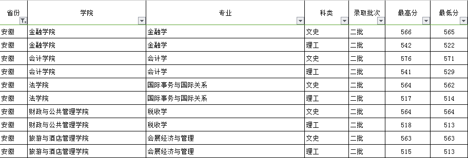 云南財(cái)經(jīng)大學(xué)2018年安徽省錄取情況一覽表