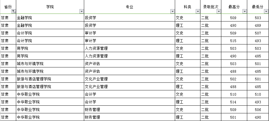 云南財經(jīng)大學2018年甘肅省錄取情況一覽表