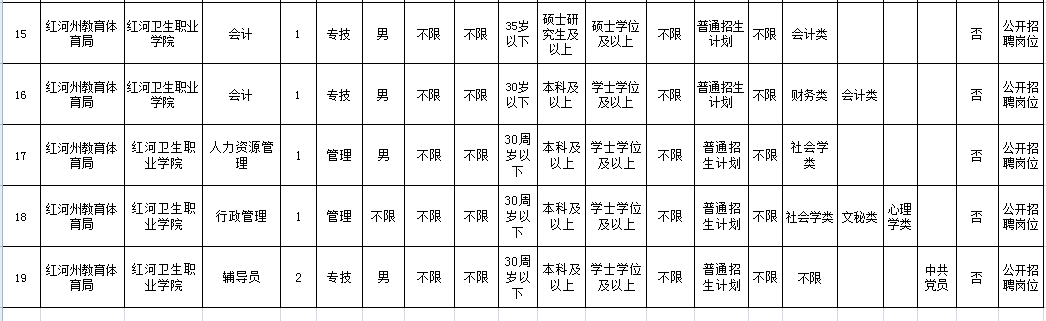 紅河衛(wèi)生職業(yè)學院2019年工作人員招聘公告(一)