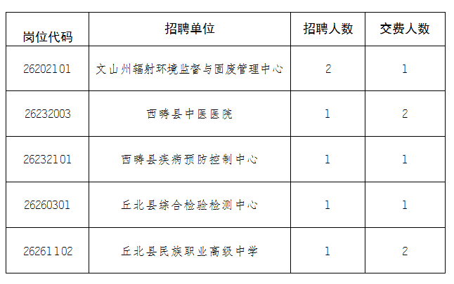 2019年文山州事業(yè)單位招聘報(bào)名工作已經(jīng)結(jié)束。經(jīng)統(tǒng)計(jì),擬招聘的13個(gè)崗位14個(gè)計(jì)劃未達(dá)到招考通告要求的開考比例(即報(bào)名人數(shù)與計(jì)劃招聘數(shù)之比未達(dá)到3:1,不受開考比例限制的崗位除外),有4個(gè)崗位有優(yōu)秀運(yùn)動(dòng)員報(bào)考。現(xiàn)將此類崗位的有關(guān)處理事宜通知如下: