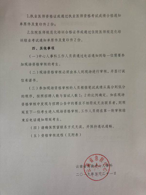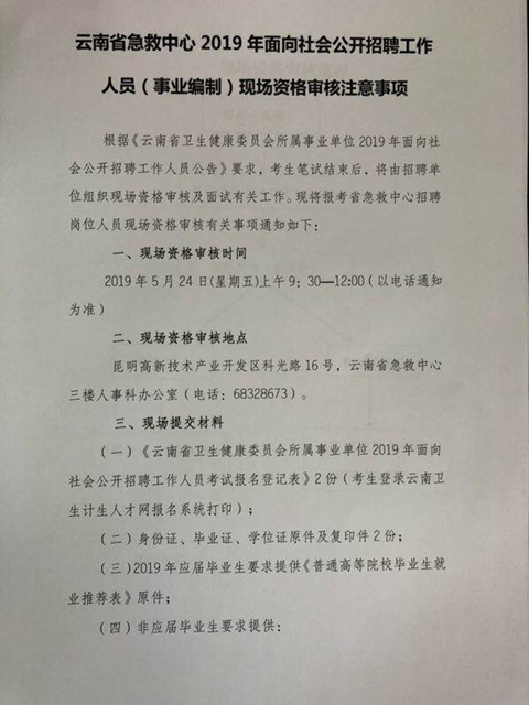 云南省急救中心2019年面向社會公開招聘工作人員(事業(yè)編制)現(xiàn)場資格審核注意事項