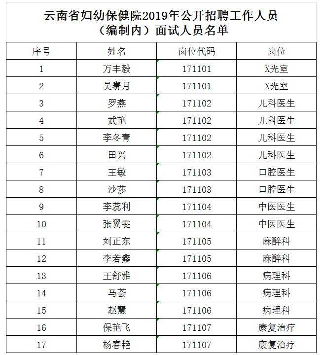 云南省婦幼保健院關(guān)于2019年公開招聘工作人員(編制內(nèi))面試公告