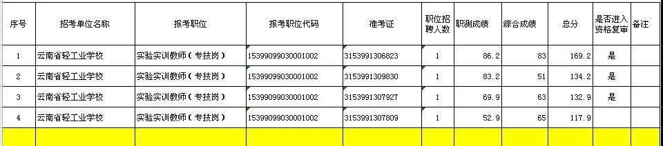 2.云南省輕工業(yè)技工學(xué)校2019年事業(yè)單位公開招聘工作人員考試筆試成績及進(jìn)入資格復(fù)審人員名單