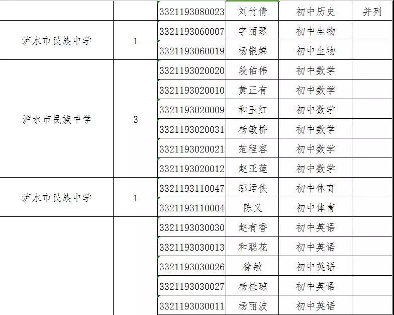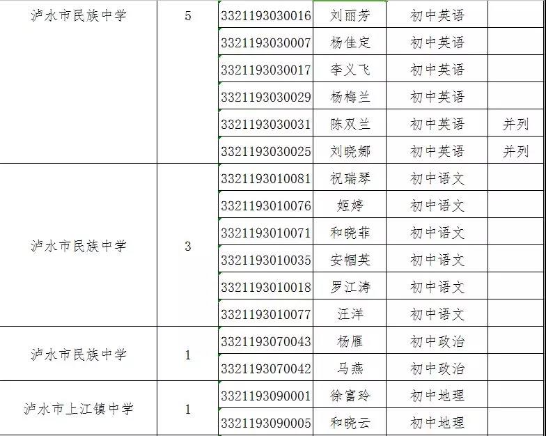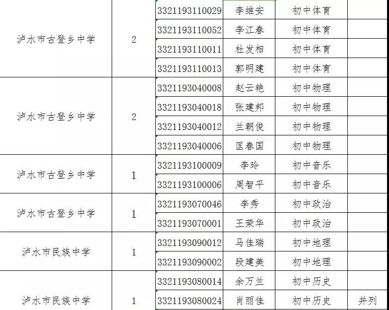 根據(jù)2019年特崗教師招聘筆試成績,瀘水市按招聘崗位數(shù)和筆試成績從高到低按不低于1:1.2的比例,最終確定91名人員進(jìn)入資格復(fù)審(具體名單詳見附件)。