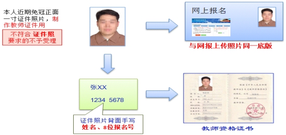 6.近期一寸免冠彩色相片1張(正規(guī)證件相片,用以辦理教師資格證書(shū),應(yīng)與網(wǎng)上申報(bào)時(shí)上傳相片同底版,相片背面寫(xiě)明姓名、身份證號(hào))。