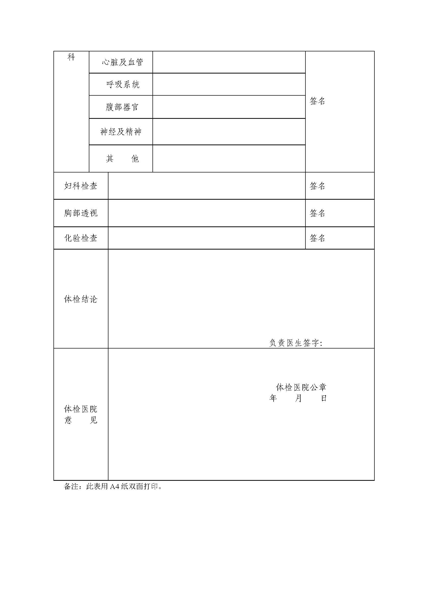 提交原件,體檢表的填寫要求:每一小項必須有結(jié)論及醫(yī)生簽字,體檢結(jié)論只允許填寫“合格”或“不合格”,其他描述型的結(jié)論不予認(rèn)可,樣式如下: