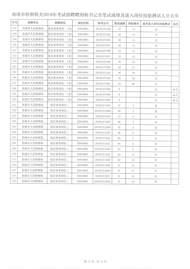 4、曲靖市檢察機(jī)關(guān)2019年考試招聘聘用制書記員筆試成績(jī)及進(jìn)入崗位技能測(cè)試人員名單詳見附件。