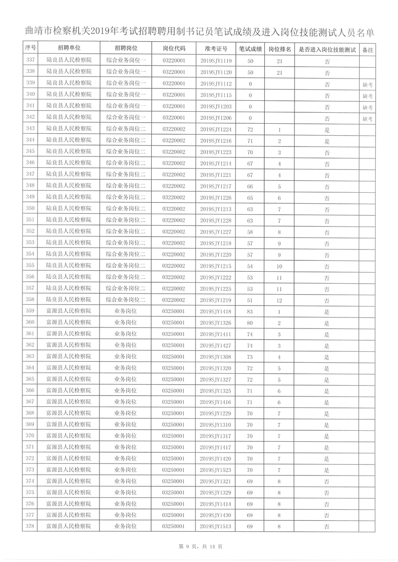 附件: 曲靖市檢察機(jī)關(guān)2019年考試招聘聘用制書記員筆試成績(jī)及進(jìn)入崗位技能測(cè)試人員名單。