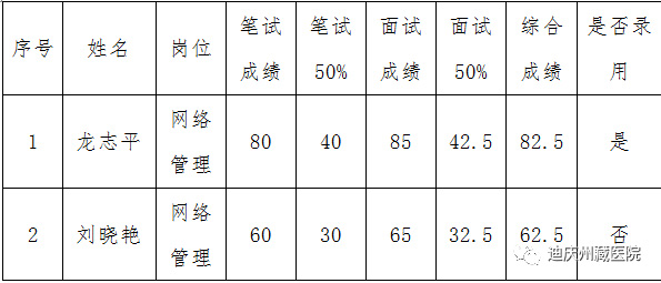 迪慶州藏醫(yī)院2020年公開招聘編外工作人員綜合成績表: