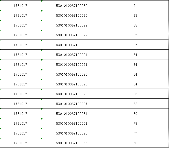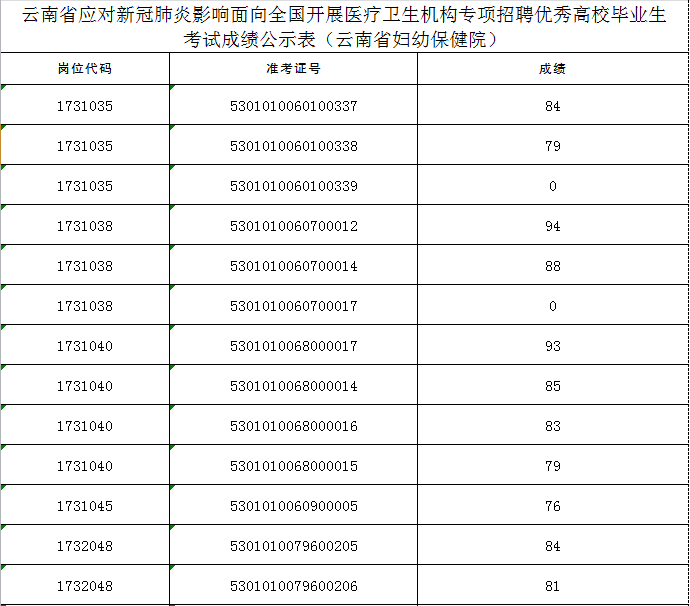 招聘優(yōu)秀高校畢業(yè)生考試成績(jī)公示表(云南省婦幼保健院)