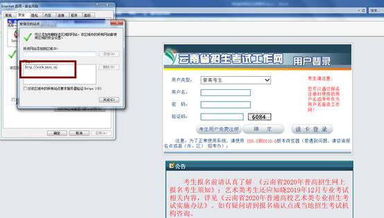 4、復(fù)制報(bào)名網(wǎng)址粘貼到添加輸入欄內(nèi)點(diǎn)擊添加(如果添加時(shí)提示:添加到該區(qū)域中的站點(diǎn)必須使用前綴https://,該前綴能確保連接的安全。則取消勾選對(duì)該區(qū)域中的所有站點(diǎn)要求服務(wù)器驗(yàn)證https)
