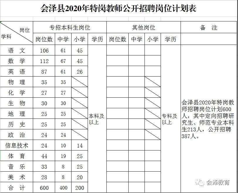 附件:會澤縣2020年特崗教師公開招聘崗位計劃表
