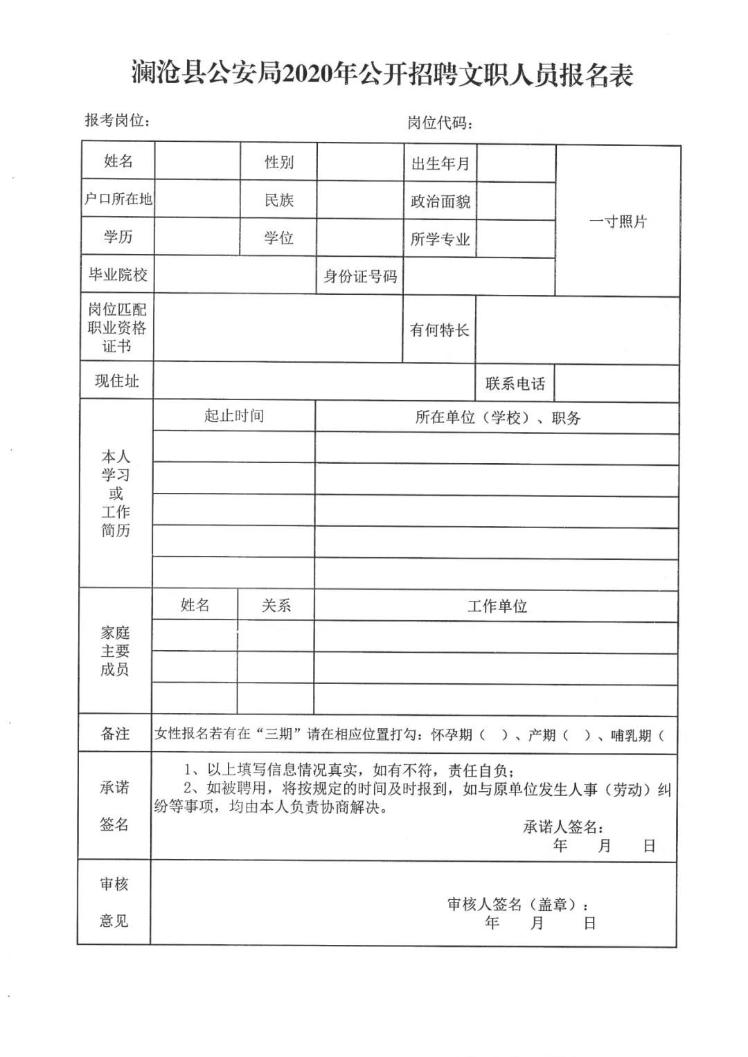 2. 瀾滄縣公安局2020年公開招聘文職人員報(bào)名表