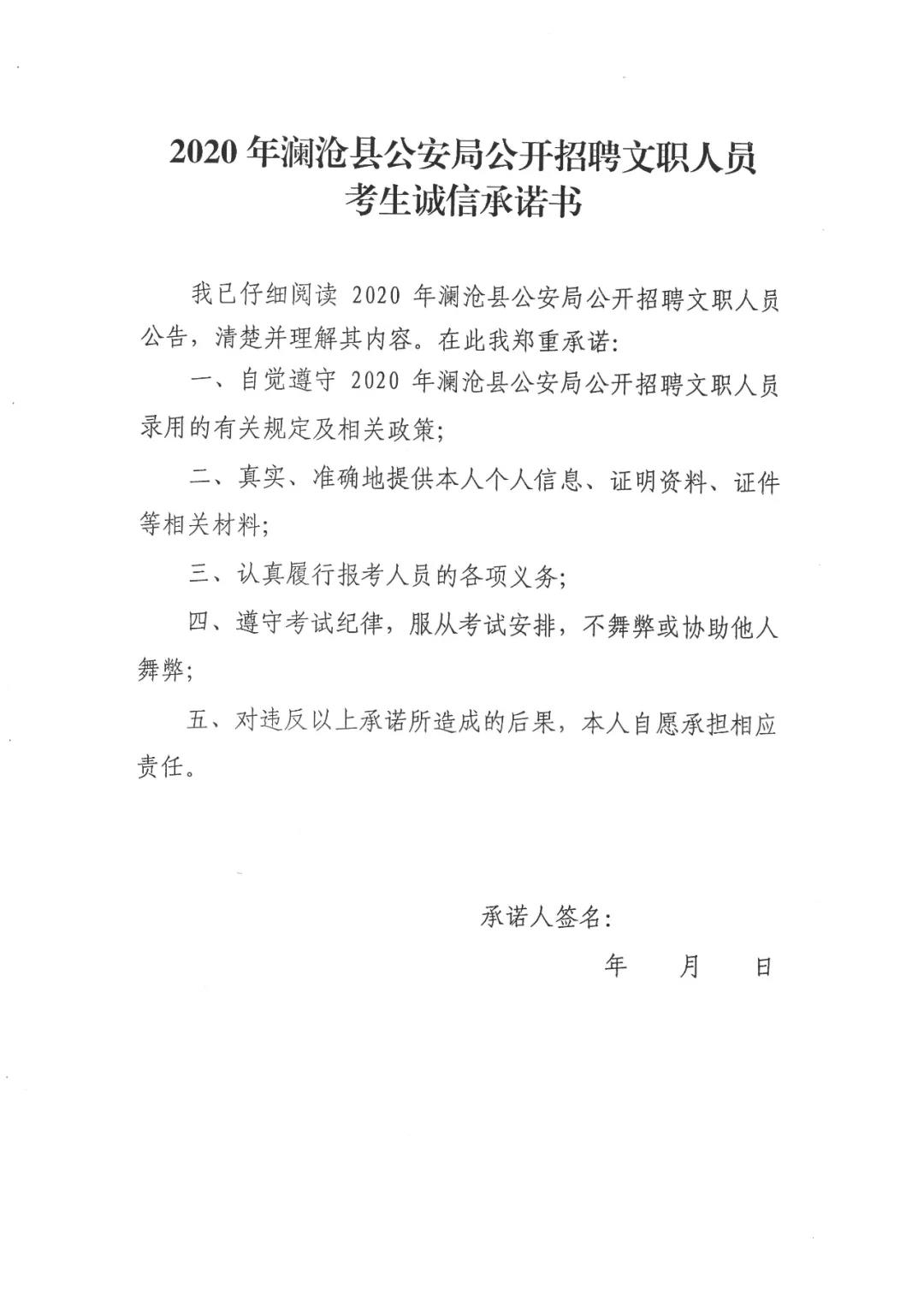 3. 2020年瀾滄縣公安局公開招聘文職人員考生誠(chéng)信承諾書