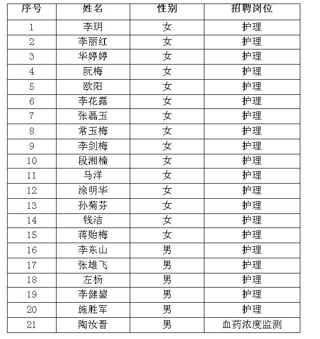 按照《大理州第二人民醫(yī)院2020年公開招聘編制外人員公告》的流程安排,經(jīng)過報(bào)名、資格審核、筆試、面試、體檢的程序,擬錄用以下人員: