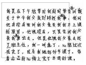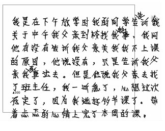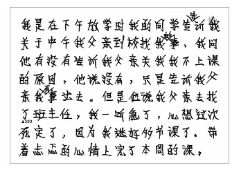 ●采用網(wǎng)上評(píng)卷,考生的答題卡經(jīng)掃描后,每個(gè)小題以答題區(qū)域框?yàn)榻?,被切割成一個(gè)個(gè)獨(dú)立的圖象,評(píng)卷教師只能看到分配給該教師的答題區(qū)域以內(nèi)的部分。如果不在規(guī)定的題號(hào)區(qū)域內(nèi)答題,例如將21題答在其它題的答題區(qū)域,則評(píng)閱21題的評(píng)卷教師將看不到21題的答題情況,導(dǎo)致該題得分為零。如果書寫答案超過該區(qū)域,則掃描設(shè)備掃描時(shí)無法將超出規(guī)定答題區(qū)外的書寫答案加以掃描,這樣,評(píng)卷教師所看到的考生答題圖象是不完整的,勢必會(huì)影響評(píng)卷成績。比如: